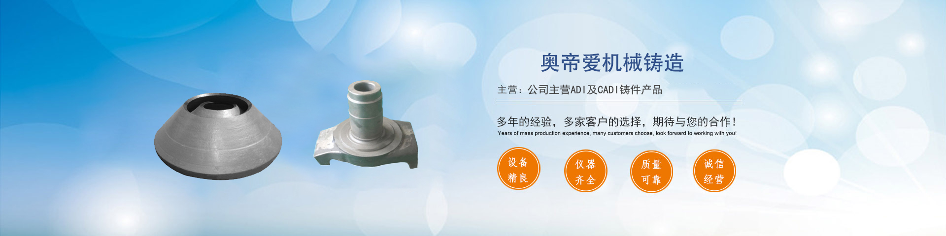 遷西奧帝愛機械鑄造有限公司成立于2007年6月,注冊資金6000萬元,坐落于鐵礦石儲量豐富的河北省遷西縣境內,位于遷西縣經濟開發區東區,占地500畝,交通運輸非常方便,是一家以特色鑄造為主的新型環保、節能、高科技民營企業,是中國鑄造協會理事單位、中國鑄造協會耐磨材料與鑄件分會理事長單位、是鋼鐵耐磨材料產業技術創新技術聯盟副理事長單位,是河北省鑄造協會副會長單位。公司生產的ADI、CADI和貝氏體鋼耐磨產品,連續5年榮...